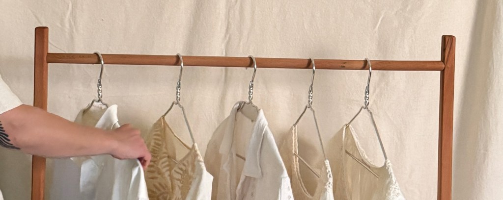 In-person work focused on wardrobe clarity and daily use. This includes wardrobe resets and ongoing support for people navigating change.